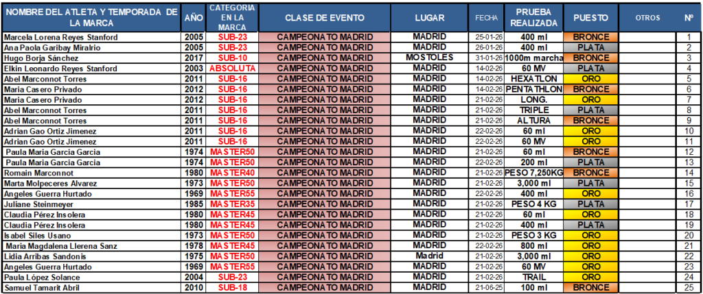 MEDALLERO FEDERADO 2026